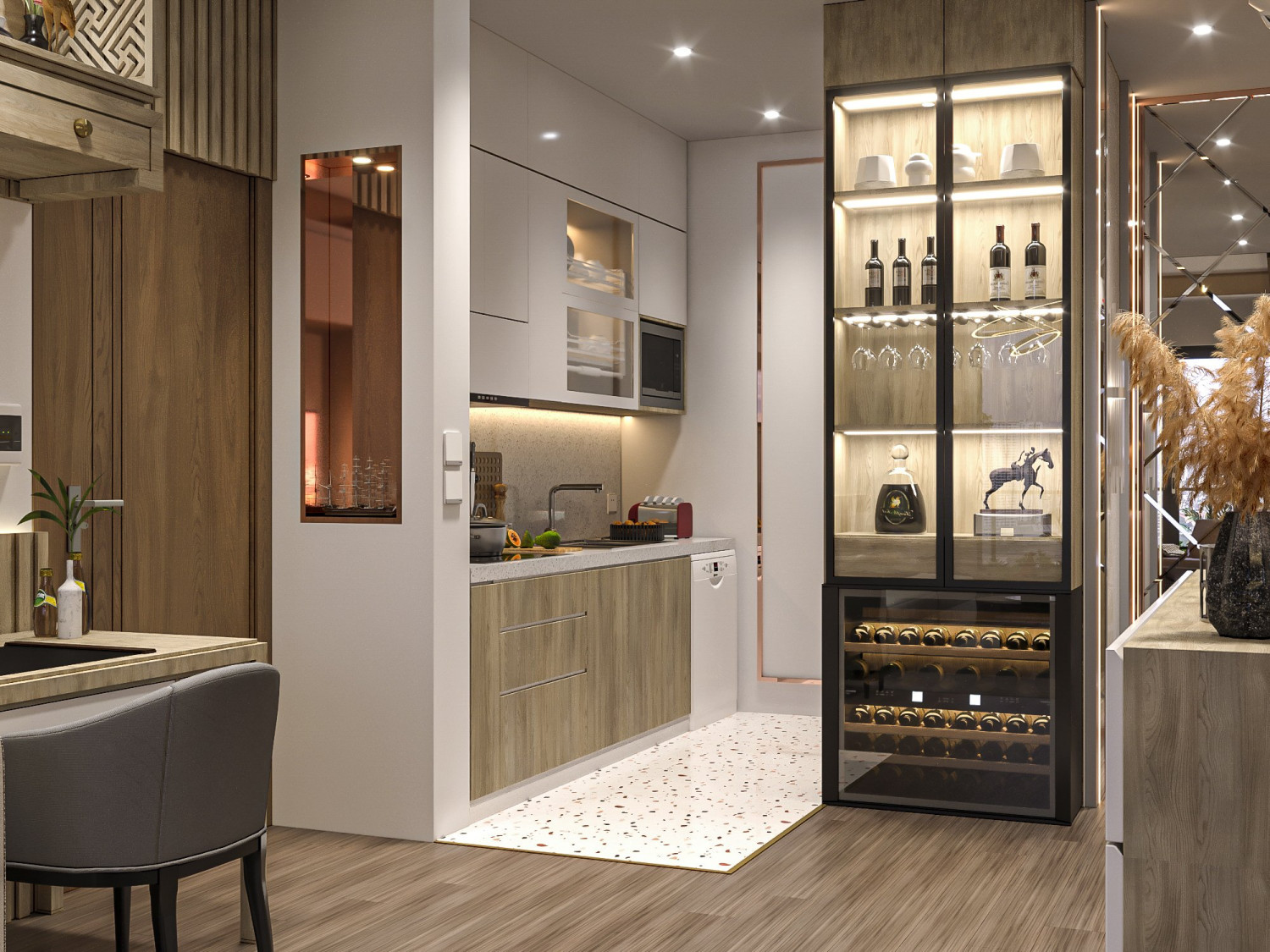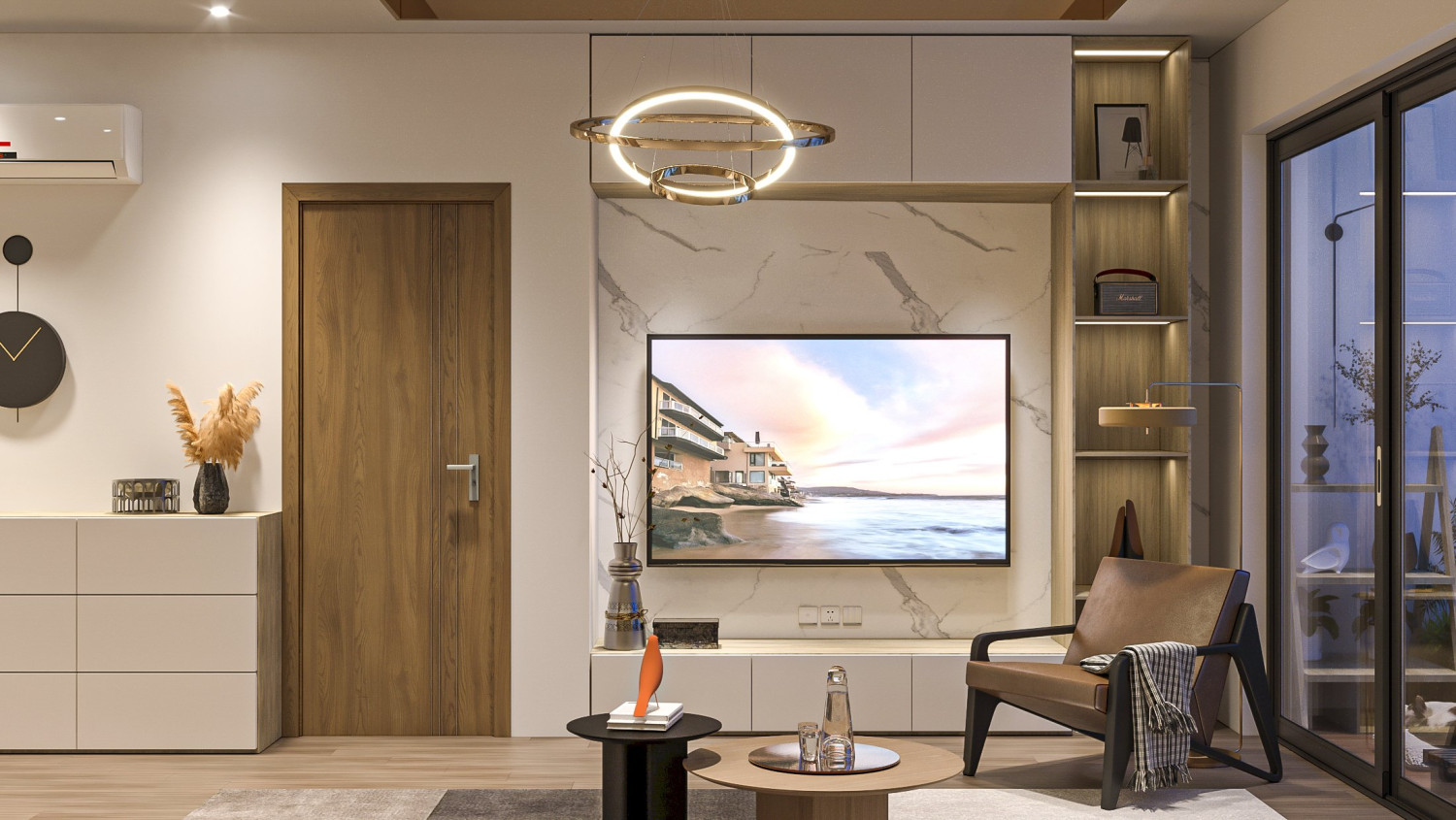 ☘️☘️ Màu sắc chủ yếu sử dụng tone mầu trung tính do đó ánh sáng là thành phần chủ đạo để trang trí và tạo nên giá trị thẩm mỹ thông qua hiệu ứng thị giác.